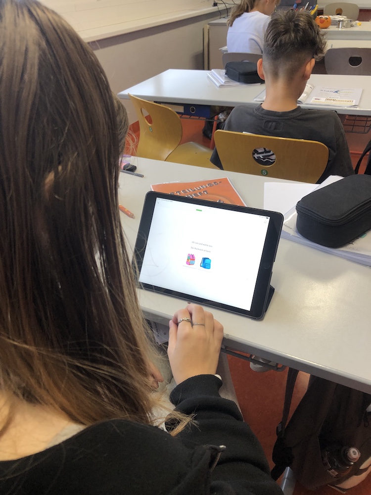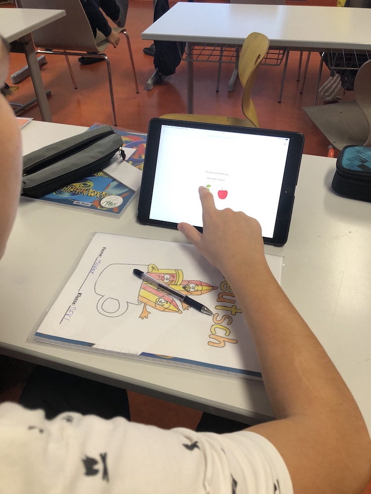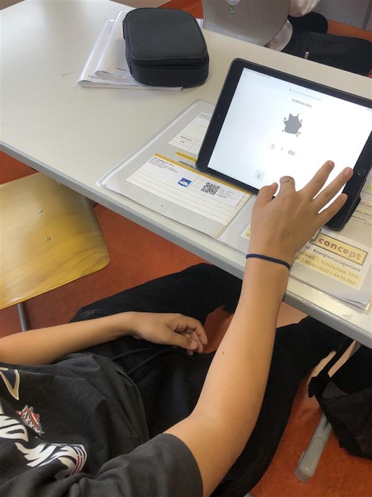 Die Deutschförderklasse arbeitet eifrig mit den IPads der Schule an der Verbesserung ihrer Deutschkenntnisse.