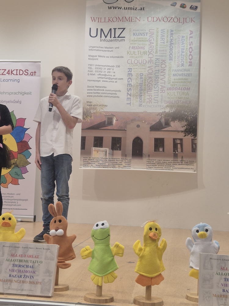 Elérkezett a nap, amikor is az új hatnyelvű jubileumi kötetet „Az én kedvenc állatom“ témával mutatták be. Mivel az EMS Oberwart több diákja is csodálatos illusztrációkat készített hozzá, iskolánkat is meghívták az eseményre. Két diákunk (Farkas Lukas, Radics Ármin) verseket is adtak elő az új kötetből. Egy nagyon jól sikerült rendezvény részesei lehettünk. Köszönjük szépen a meghívást.
