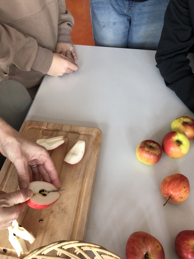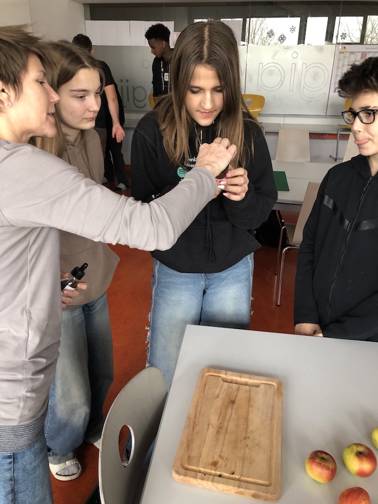 Eine Expertin der Wieseninitiative besuchte am 18.12. die Deutschförderklasse. Nach einem interaktiven Workshop lernten die Schülerinnen und Schüler viel, wie Streuobstwiesen zur Artenvielfalt beitragen. Anschließend wurden vier der 300 im Burgenland heimischen Apfelsorten verkostet. Ganz Mutige probierten zum Schluss noch einen Tropfen Apfelessig.