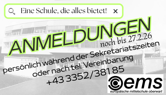 Die Anmeldung ist im Sekretariat der EMS Oberwart natürlich auch unterjährig möglich.
