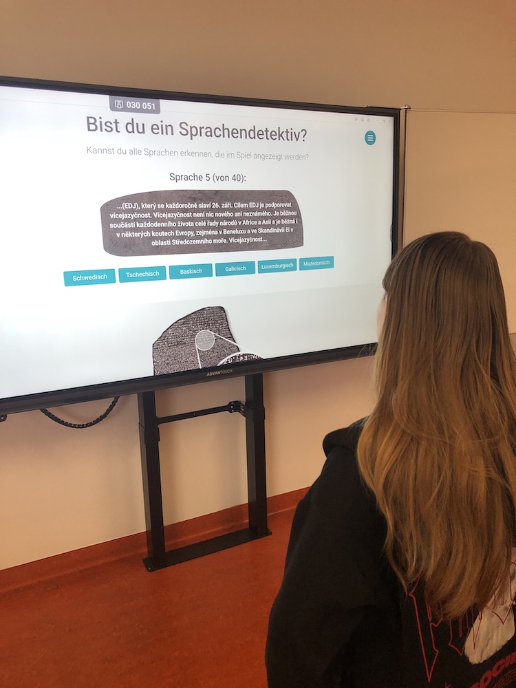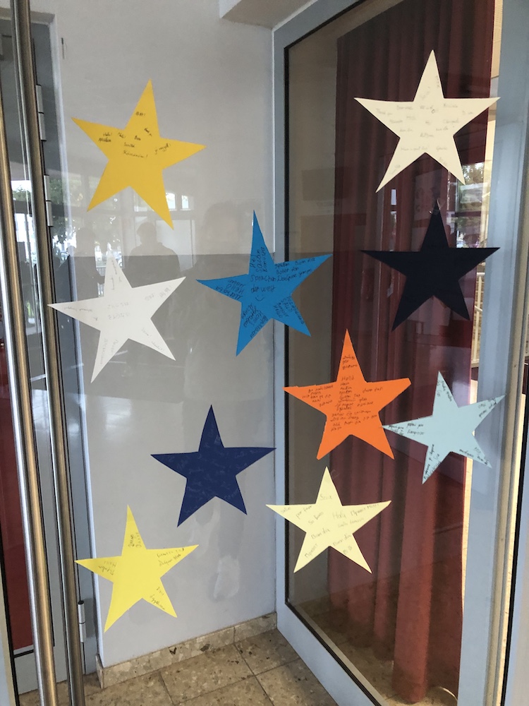 Die EMS Oberwart feiert den Tag der europäischen Sprachen. Dabei schrieben die Schülerinnen und Schüler Höflichkeitsfloskeln, wie Bitte, Danke und Guten Tag auf die europäischen Sterne. Auch probierten sie ihr Wissen als Sprachdetektive. Am meisten Spaß machte der Zungenbrecherwettbewerb in den Sprachen, die aktuell in der Deutschförderklasse gesprochen werden.